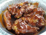 Chicken wings are breaded and fried, then tossed in buffalo sauce.