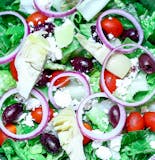 Romaine lettuce, cherry tomatoes, red onions, kalamata olives, artichoke hearts, feta cheese and served with greek dressing.