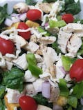 Marinated chicken breast, romaine lettuce and mozzarella cheese with caesar dressing.