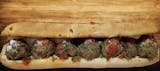 Homemade meatballs, tomato sauce, and mozzarella cheese.